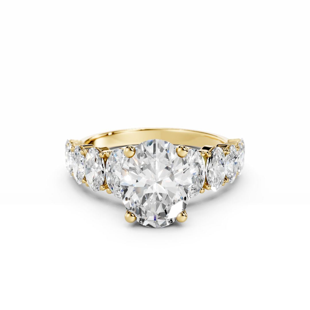 This breathtaking 2 Carat Oval Diamond Engagement Ring with Oval Pave Diamonds is designed to impress with its luxurious shine and exceptional craftsmanship. The elongated center oval diamond is enhanced by an additional 2 carats of oval-shaped pave diamonds on the band, giving it a bold and glamorous look while maintaining timeless elegance. Available in both natural and lab-grown options, it’s a statement ring that will leave a lasting impression.